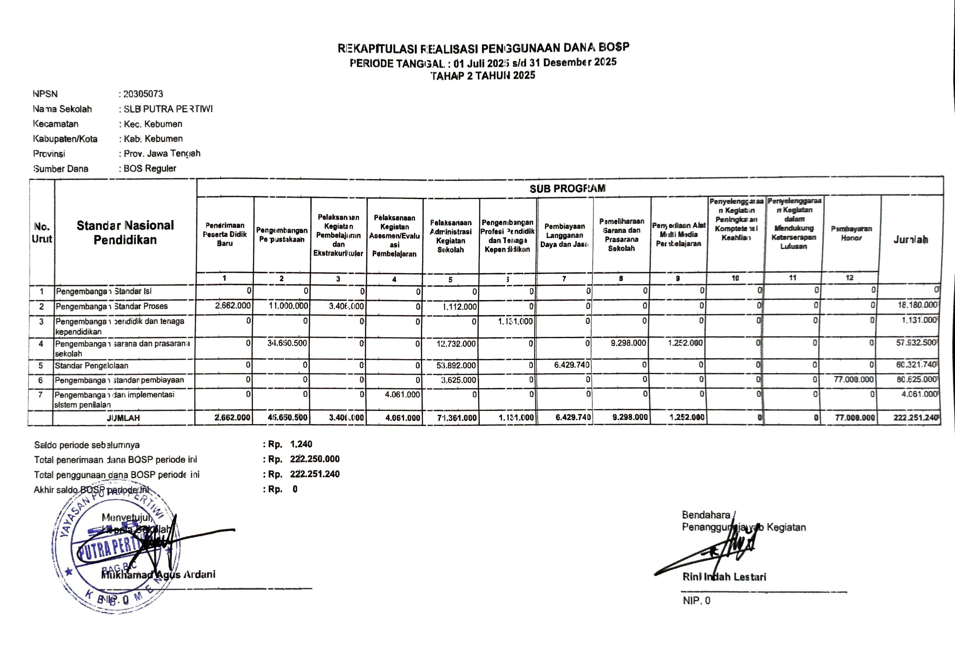REKAPITULASI PENGGUNAAN DANA BOSP →